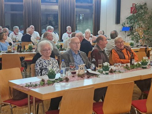 Schmackhafte Gerichte runden die Feier ab. Ganz besonders freuen sich darüber auch die Wanderer, die vor der Feier bereits 1 Stunde mit Horst Hagel unterwegs waren. Der 1. Vorsitzende, Eckhard Hunzinger, bedankt sich bei allen, die zum Gelingen der Feier beitrugen. – Wer es nicht gleich aufgegessen hat, kann ein kleines süßes Päckchen als Erinnerung mit nach Hause nehmen.