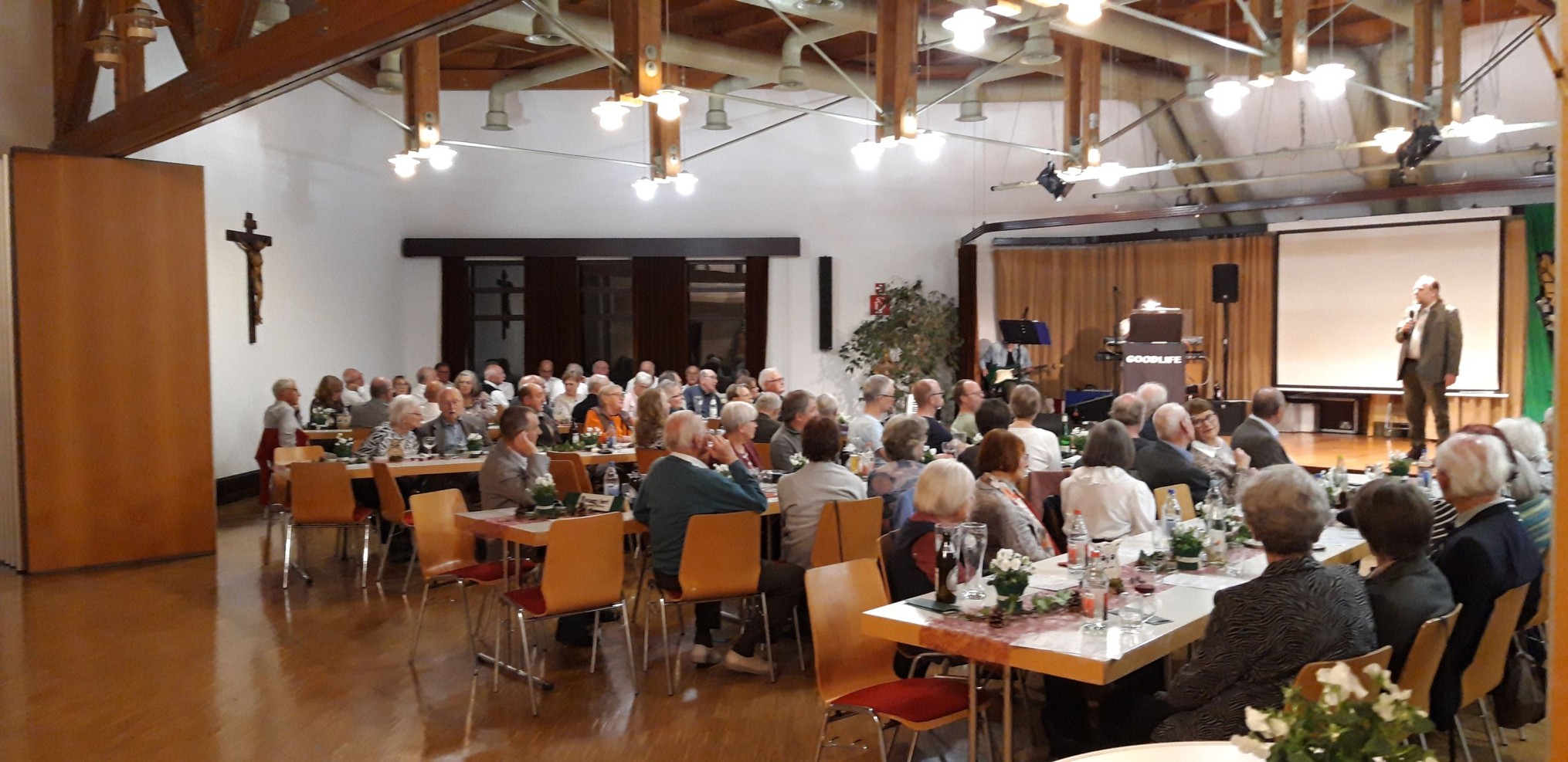 Zu der Herbstfeier hatte der Schwäbische Albverein Ortsgruppe Tuttlingen ins kath. Gemeindehaus St. Josef eingeladen. Zahlreiche Mitglieder und Gäste sind der Einladung gefolgt und erlebten einen unterhaltsamen Abend. Zur frühzeitigen Saalöffnung hatte das Bewirtungsteam um Andrea und Christian Hagel mit Linsen, Würstchen und Spätzle und weiteren Köstlichkeiten überrascht, so dass man schon gestärkt das Programm erwartete. Nach der Begrüßung durch den Vorsitzenden Hans Werner Scheller brachte der Seemannschor Möhringen mit seinen Shantys, Seemannslieder und Schlager gleich eine sehr gute Stimmung in den Saal. Ein Bildvortrag von Helmut Faude über Wanderungen und Aktivitäten des Vereins seit der letzten Herbstfeier im Oktober 2024 ließ Erinnerungen und schöne Erlebnisse wach werden. Claudia Hatz, die auch die netten Eulen der Tischdeckoration zusammen mit Helmut Faude und ihrer Enkelin gebastelt hatte, eröffnete dann das Kuchenbuffet mit den leckeren von Mitgliedern selbst gebackenen Torten und Kuchen. Weitere Auftritte des Seemannschor Möhringen sorgten für gute Stimmung und das Goodlife Duo für musikalische Unterhaltung und Tanzmusik zu der auch fleißig getanzt wurde. Ein besonderer Höhepunkt des Abends war die Ehrung der Jubilare durch den Gauvorsitzenden Klaus Butschle und den Vorsitzenden der Ortsgruppe Tuttlingen Hans Werner Scheller. Geehrt wurden Günther Wolff für 75 Jahre, Frank Martin, Sybille Pauli, Erich Schaffrinski und Ralf Schmid für 50 Jahre, Lisa Hunzinger, Christa Anger und Irene Dietenberger für 25 Jahre Mitgliedschaft. Der Gauvorsitzende, der beim Trossinger Albverein Mitglied ist, erwähnte bei der Ehrung von Günther Wolff, der viele Jahre Wanderfahrten nach Südtirol organisiert und bei diesen Fahrten eine große Anzahl Trossinger Albvereinler dabei hatte, dass beim Albverein in Trossingen diese Südtirolfahrten unvergessen und in guter Erinnerung sind. Mit der Ehrenurkunde des Gesamtvereins wurde den anwesenden Jubilaren zu den Glückwünschen und dem Dank der Ortsgruppe für die Treue zum Albverein auch ein Geschenk überreicht . Geselliges Beisammensein mit Tanzrunden beschlossen diese gelungene Herbstfeier.